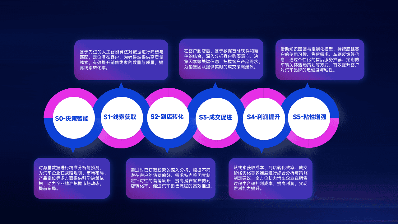 通过拓宽潜在客户来源、、优化线索分配并提高到店转化率,,,,以增强销售效率。。同时,,,利用线索数据不断优化分析模型,,,,有效提升转化率,,,,扩大营销影响力。。。。